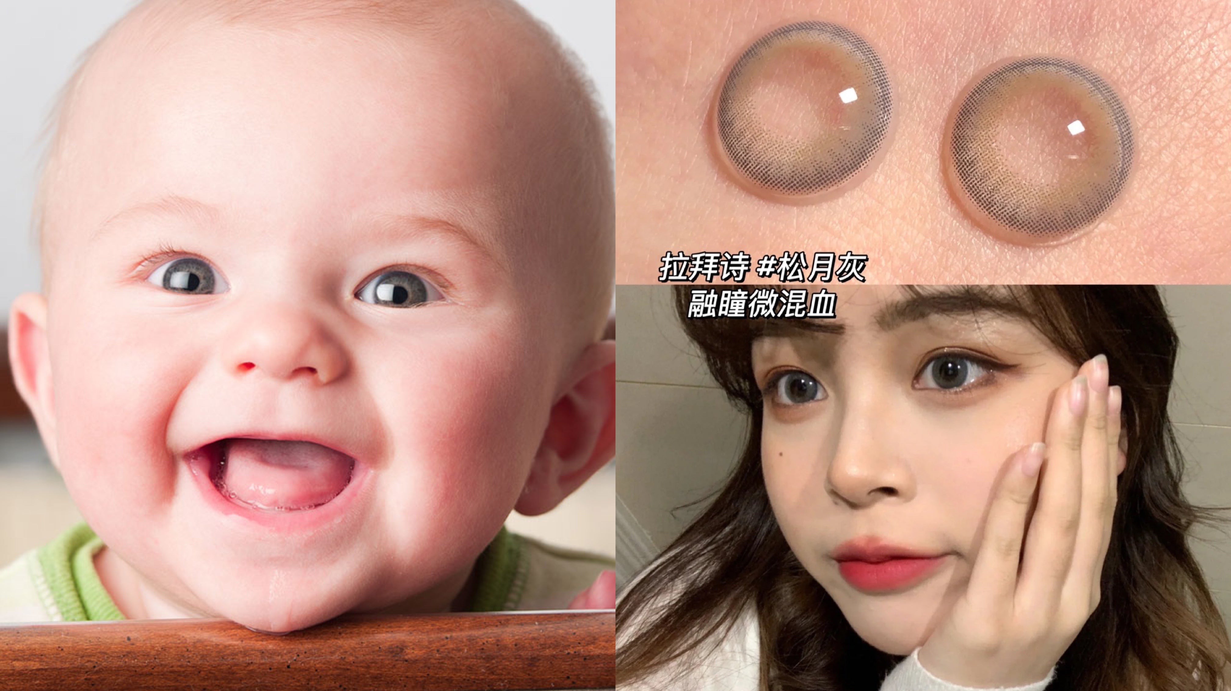 还有些宝宝的瞳孔颜色较深,但在阳光底下会微泛灰调,就如图片里的宝宝一样。想要打造这种感觉的女生可以尝试拉拜诗樱桃小丸子联名系列的松月灰。外圈到内圈是由深到浅的过度灰色,显得眼神非常清澈有神,也有微微混血的感觉!